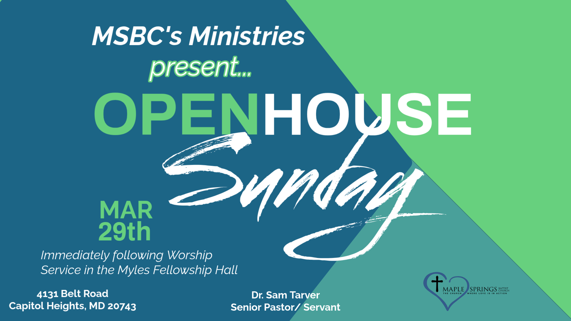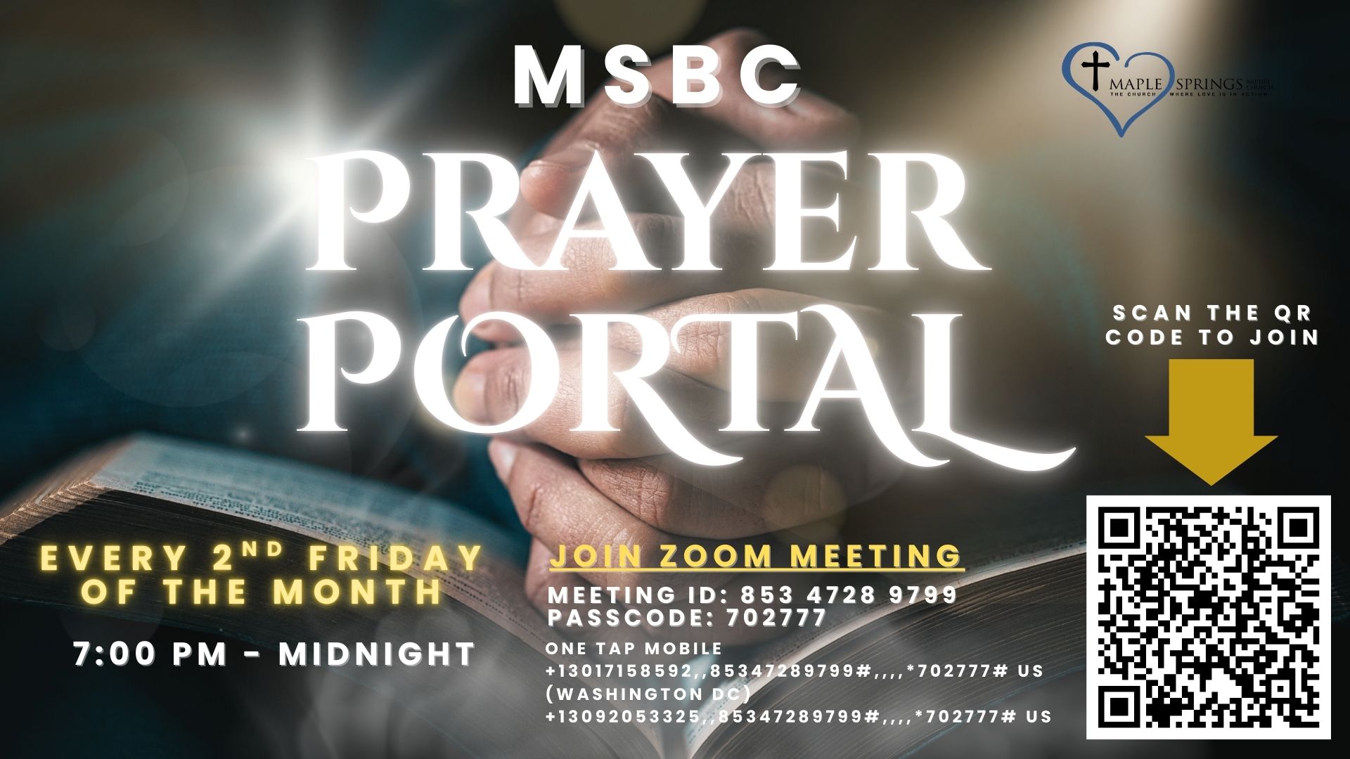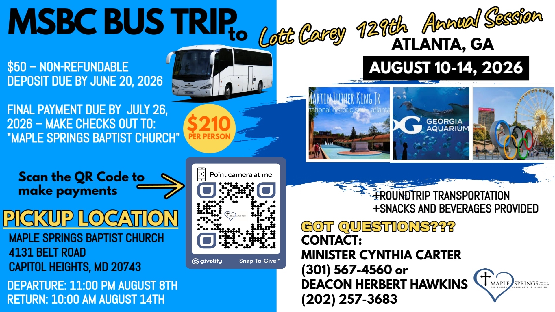 Maple Springs Baptist Church (MSBC) was established in 1963. Throughout the years, our faces and buildings have changed; however, MSBC has remained steadfast to the mandate of making disciples for our Lord Jesus Christ. MSBC is founded on the precepts of fellowship and service and seeks to affirm the “priesthood of all believers” and “transformed lives.” As such, MSBC seeks to equip, empower and encourage unity of all Christians to impact the world for our Lord Jesus Christ.